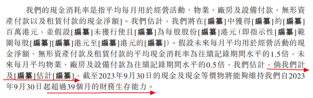 招股书称,假设未来每月平均用于经营活动的现金净额、无形资产付款及租赁付款的平均现金消耗率为往绩记录期间水平的1.5倍,未来每月平均物业、厂房及设备付款为往绩记录期间水平的0.5倍,康乐卫士估计,倘计及港股IPO募集资金,截至2023年9月30日的现金及现金等价物将能够维持自当日起超过39个月的财务生存能力。