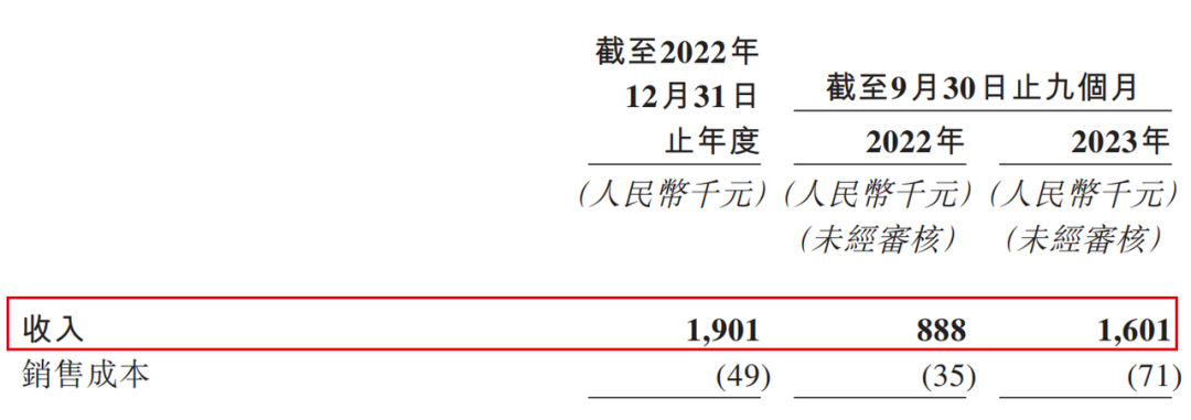 2022年-2023年前9月,公司仅实现收入190.1万元、160.1万元。