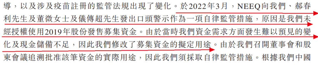 于2022年3月,NEEQ向康乐卫士、郝春利、董微及副总裁仪传超发出口头警示作为一项自律监管措施,原因是公司未经授权使用2019年股份发售募集资金。