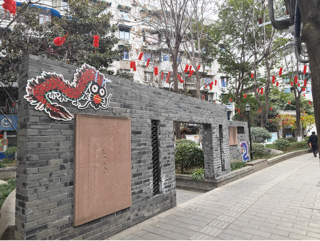 成都高新区芳草街街道蓓蕾社区联合社区儿童进行艺术创作,这些孩子们的作品中融入了他们对龙的想象和创意。孩子们的作品被重新组合后现身于社区建筑立面、树梢、街道旁的设施以及店铺门前,打造出了一个奇幻的龙的世界,处处洋溢着新年的喜庆和欢乐,而每一个走进街区的人都能与这些作品不期而遇。