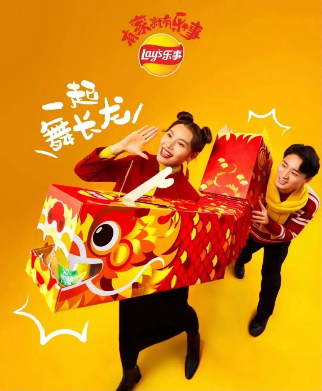 为迎接即将到来的春节,乐事薯片焕新龙头包装,并与山姆联名推出限定版舞龙礼盒,一人高的乐事乌龙礼盒内含36包热门产品,龙身龙角都能立起来,小朋友和猫都能玩得很开心的包装。