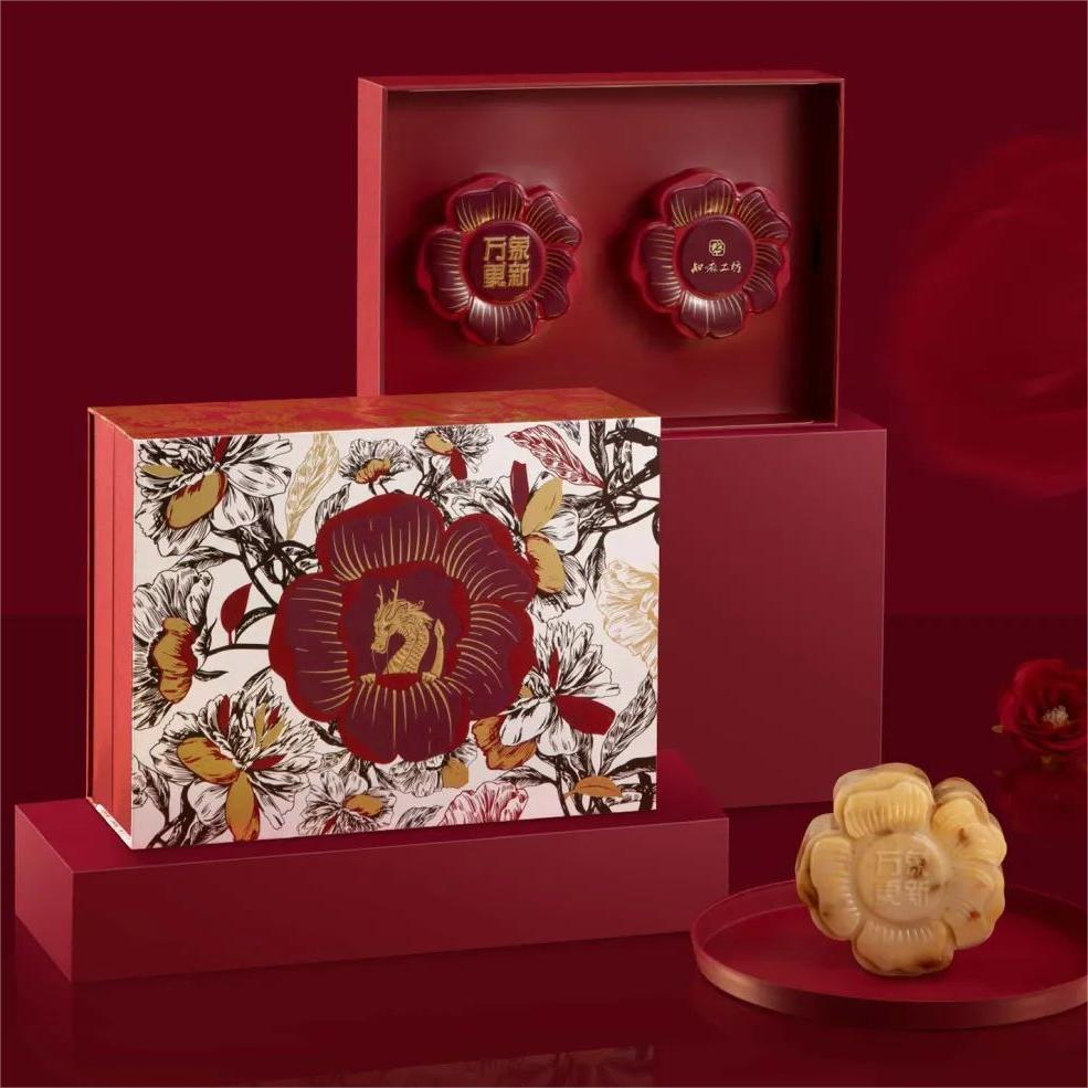 区别于市面上以“红火”为主色调的品牌,有的品牌反其道而行,跳脱出大红大紫的包装,通过一些龙年元素来丰富礼盒,既生动又不脱离龙年主题。