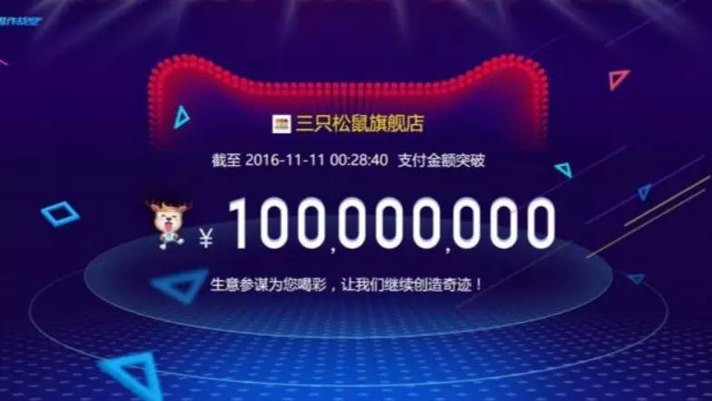 ▲ 在 2016 年双十一中,三只松鼠销售额在 28 分钟时超过 1 亿元。