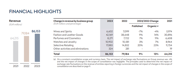 图片来源:LVMH2023财务数据