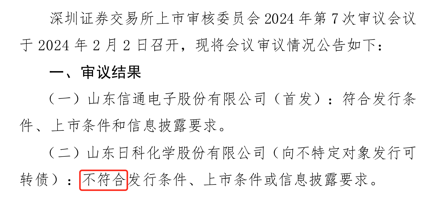 日科化学(300214.SZ) 发行可转债申请未获深交所审核通。