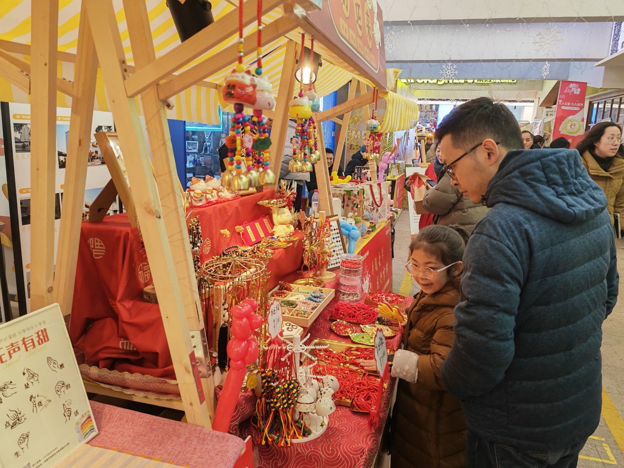 “这条龙编织得好精致,我要买一个挂在车上,图个好运。”在现场的文创产品集市区、喜乐游园区、儿童跳蚤市场区域,市民们积极参与写春联、福字、丢沙包、投壶等游戏,选购自己喜欢的礼品,在乐趣中感受年味。