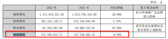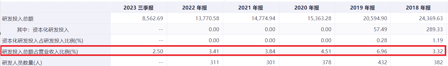 2023年前三季度,东阿阿胶的研发费用仅为1.38亿,同比下降6.8%。