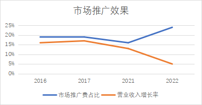 值得注意的是,逐年上升的销售费用以及市场推广费用,并没有给东阿阿胶带来营业收入增长率的同比例增加,营销费用的投入出现边际递减效应。