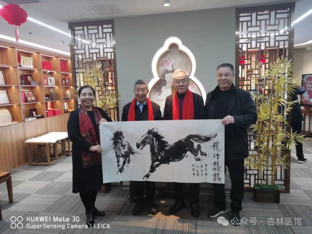 “春满杏林花正好,德承医圣业长兴”,董经纬书记亲手书写对联赠予杏林,希望杏林能够继续发挥中医特色。中医要在传统优势的基础上利用平台优势,整合各类资源及融媒体,聚焦服务发展。