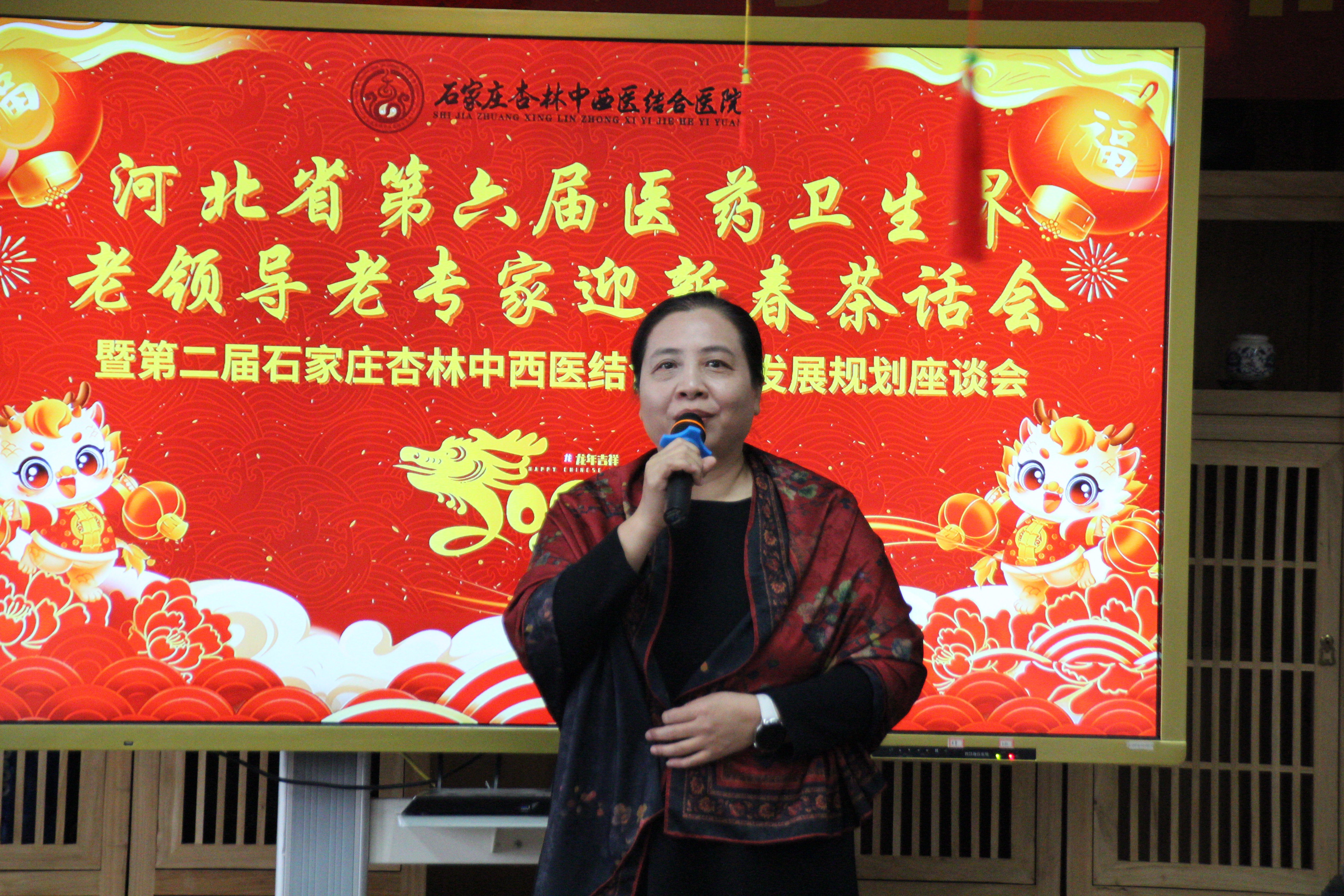 陈俊梅在致辞中首先代表承办单位对与会专家的到来表示欢迎,向长期以来对杏林发展大力支持的桥西区各级领导,卫健局、审批局、办事处领导等以及社会各界表示感谢!她表示,2023年杏林完成杏林中西医结合医院正式成立,胡希恕经方传承基地成立,申请的三个特色院内制剂三件大事。2024年继续立足临床,抓好学、教、研这条主线,向关心支持杏林发展的各界领导交一份满意答卷。