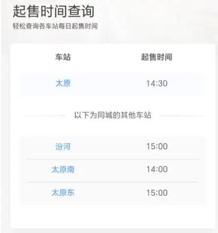 如果能巧妙“玩转”App的规则,或许能离成功购票更近一步。以12306为例,据“中国铁路”官方公众号发布的信息,乘客可尝试以下举措。其一,设置开售提醒,即在12306“我的—出行向导—起售时间”功能中,查询目的地站的车票起售时间,随后可根据相关结果设置闹钟,避免错过。《IT时报》记者尝试以贵州遵义站进行查询,显示结果为即日起至2月13日(大年初四)13:30。再以山西太原为检索条件,除了显示出太原站的起售时间,页面还显示了汾河、太原南、太原东这三个同城车站的起售时间,一定程度上为乘客提供了便利。倘若乘客想查看全部车站的起售时间,点击页面中的相关按钮即可,不过手动输入目标车站得到的结果更具有指向性,更有效率。