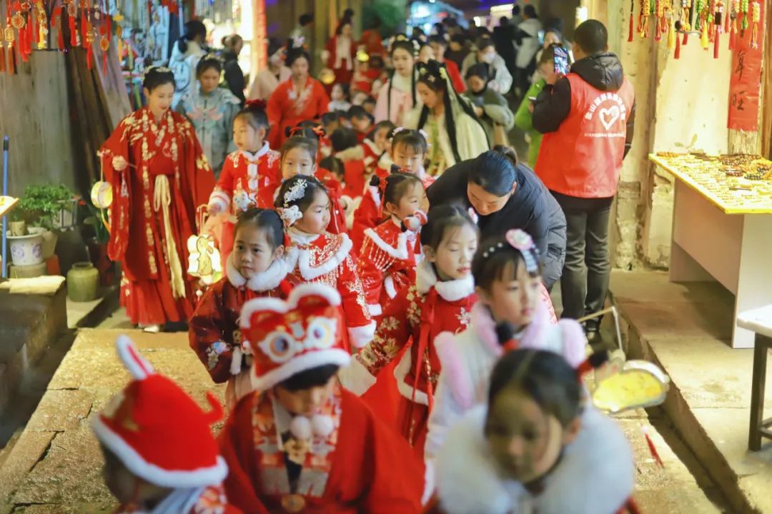 世间美好凝聚在一灯之中,做一盏元宵灯笼,享无数美好时光。萌娃们身穿汉服,头戴虎头帽,提着DIY的龙灯穿梭在古城小巷,象山年的高能时刻就在元宵节“十四夜”。