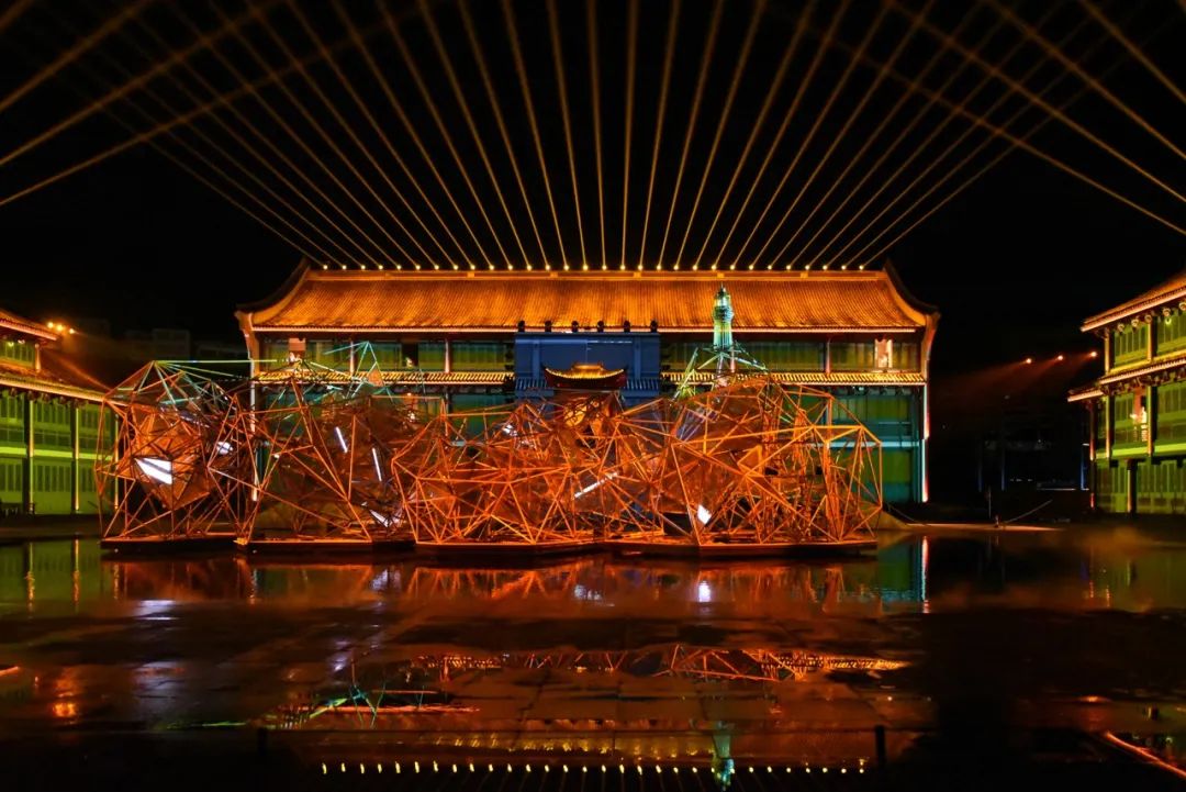 万象山海,千年古城渔鼓声声,渔光动人是诡谲瑰丽的光影童话,也是虚实交织的众生万象。灯印幢幢,铃声阵阵,都记录着石浦人民与海洋的情谊,震撼的光影大秀 上演冰海场景演艺。