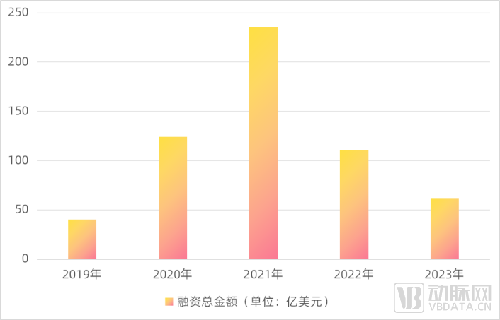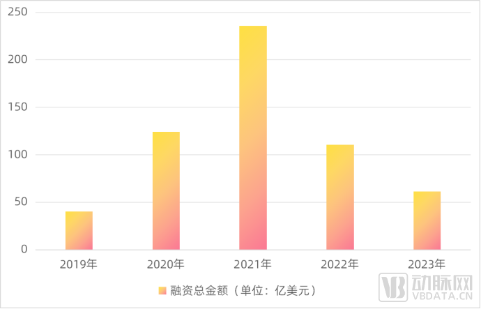 2019-2023年国内生物医药领域融资总金额历年变化,数据来源:动脉橙产业智库,蛋壳研究院