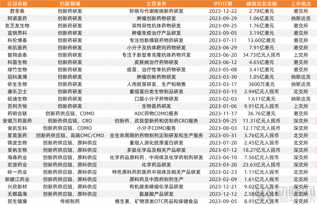 2023医药领域IPO情况一览,数据来源:动脉橙产业智库,蛋壳研究院