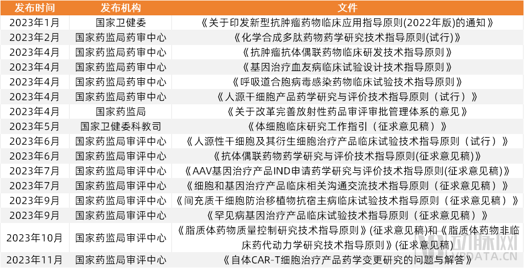 2023年国内针对生物医药各细分领域出台的临床研究指导原则,数据来源:公开新闻渠道搜集整理,蛋壳研究院
