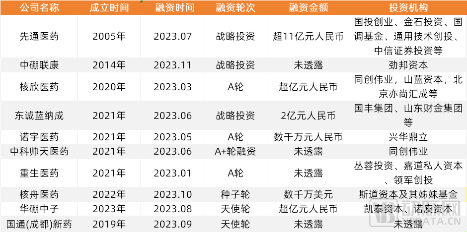 2023年核药领域融资情况,数据来源:动脉橙产业智库,蛋壳研究院