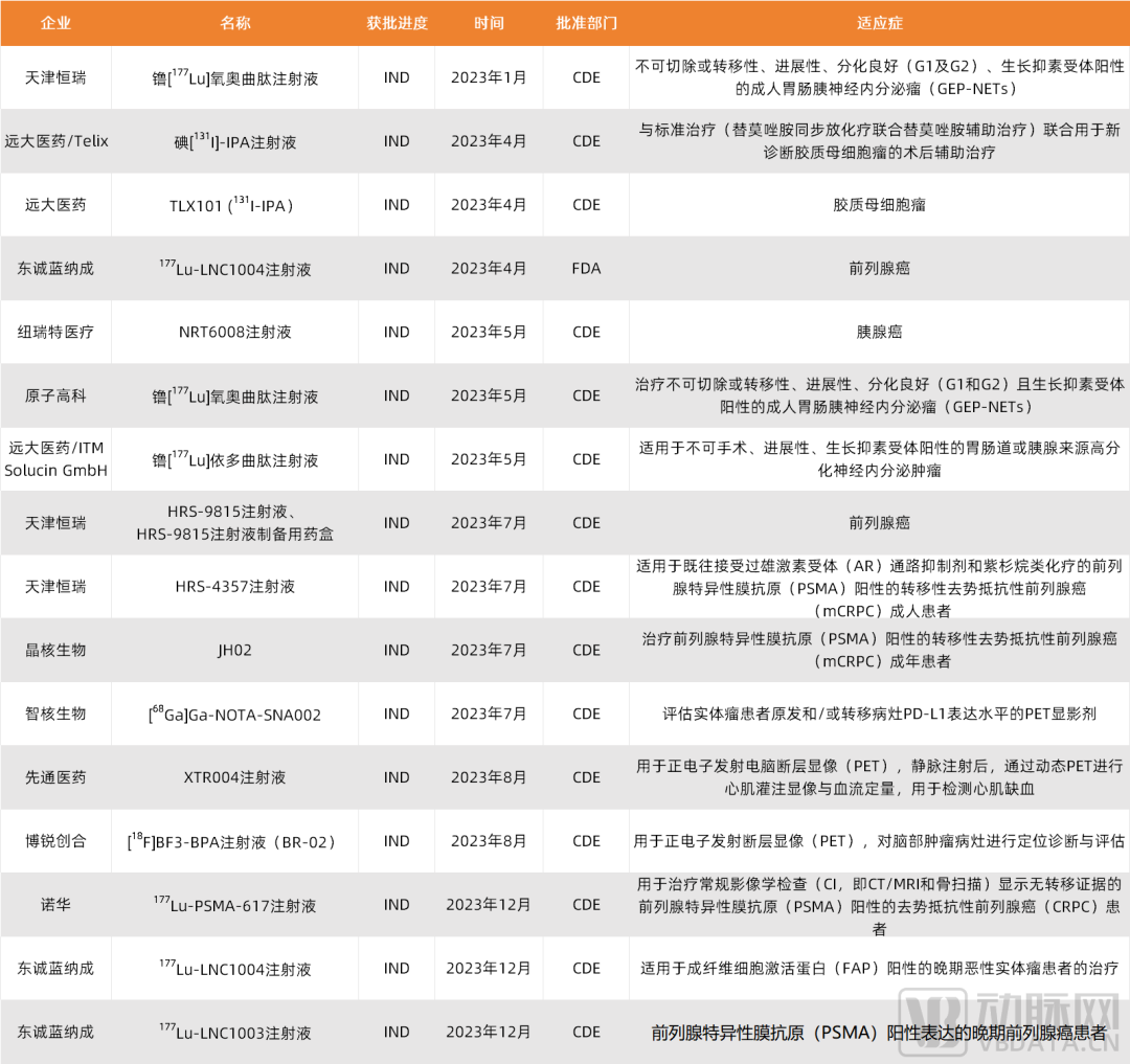 2023年中国核药管线IND获批情况,数据来源:各渠道公开资料整理,蛋壳研究院