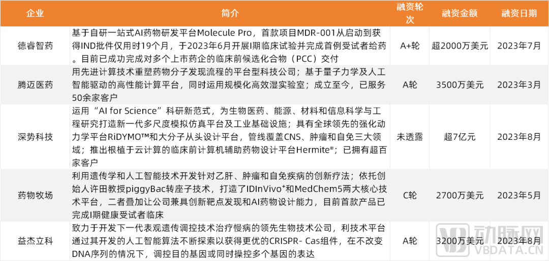 AI+新药研发领域融资金额排名TOP5项目,数据来源:动脉橙产业智库,各企业公开报道,蛋壳研究院