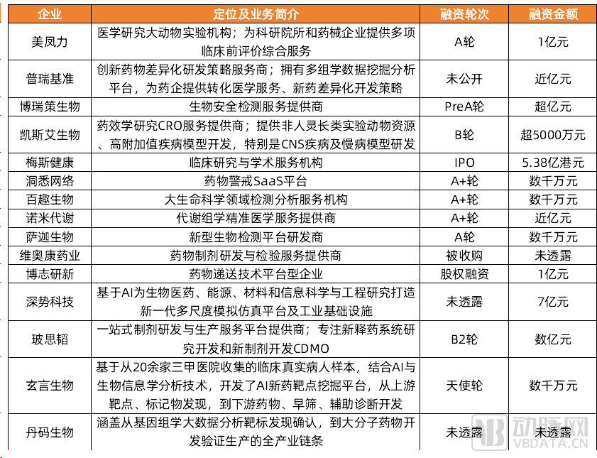 2023获得融资的特色CXO,数据来源:动脉橙产业智库,各企业公开报道,蛋壳研究院