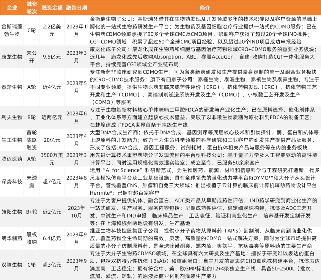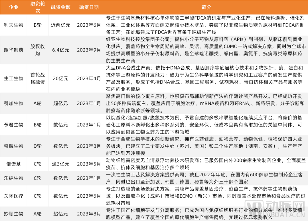 这造就了2023年生物医药领域另一个投融资特征:上游供应链项目融资相对火热。