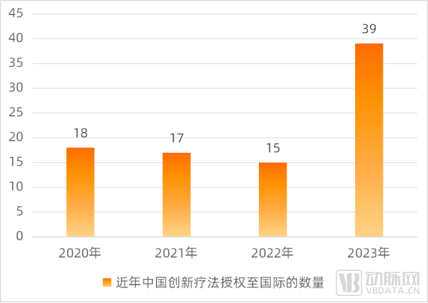 2023年39款中国创新药实现国际授权合作,创近4年新高,数据来源:药明康德,蛋壳研究院
