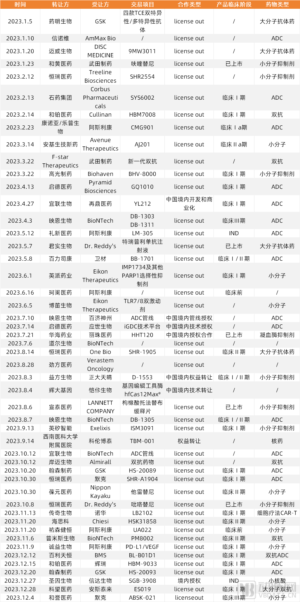 2023国内创新药企对外技术/产品授权交易,数据来源:动脉新医药,蛋壳研究院