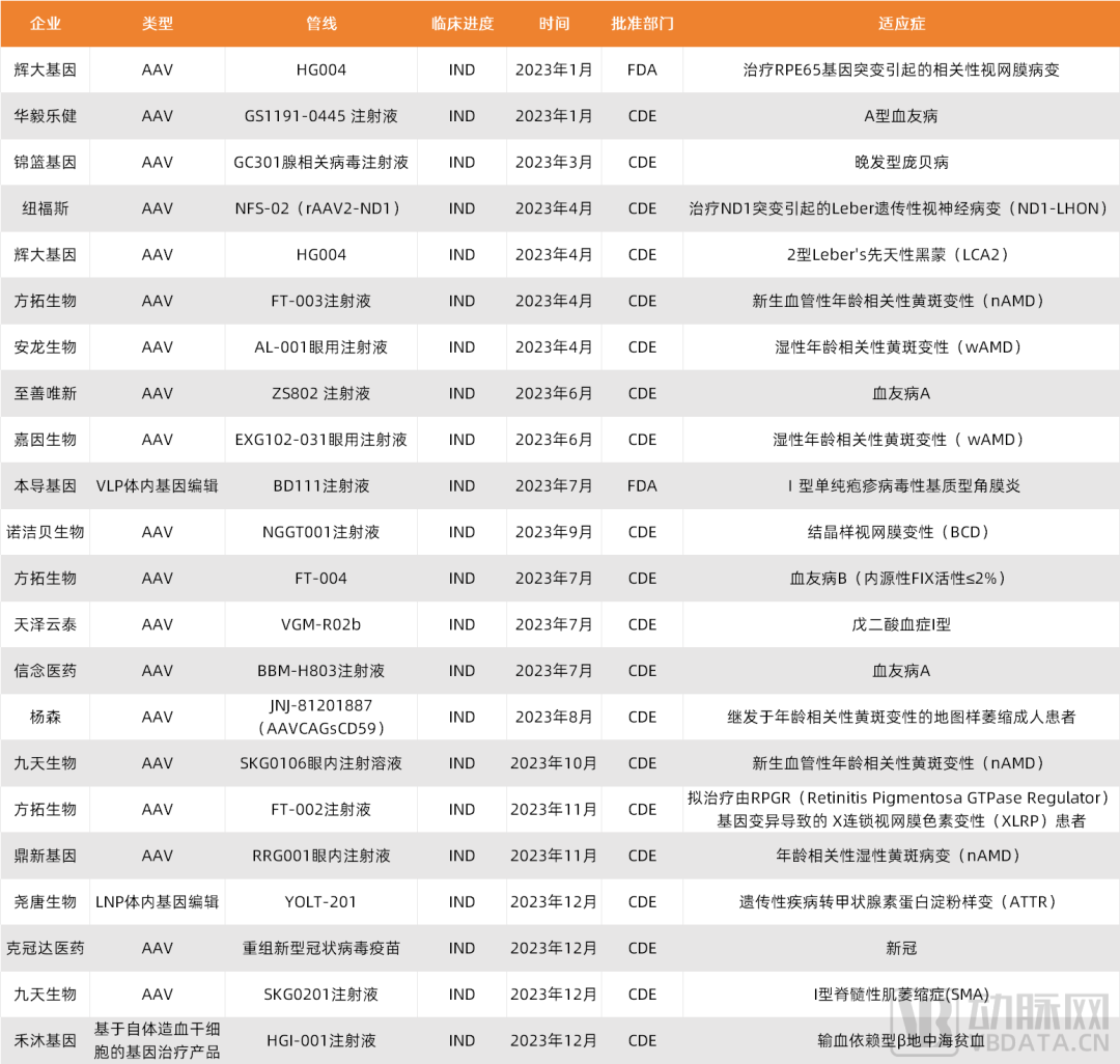 2023年国内基因治疗管线IND获批情况,数据来源:公开新闻汇总整理,蛋壳研究院