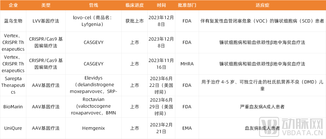 2023年全球获批上市的5款基因治疗产品概况,数据来源:公开新闻汇总整理,蛋壳研究院