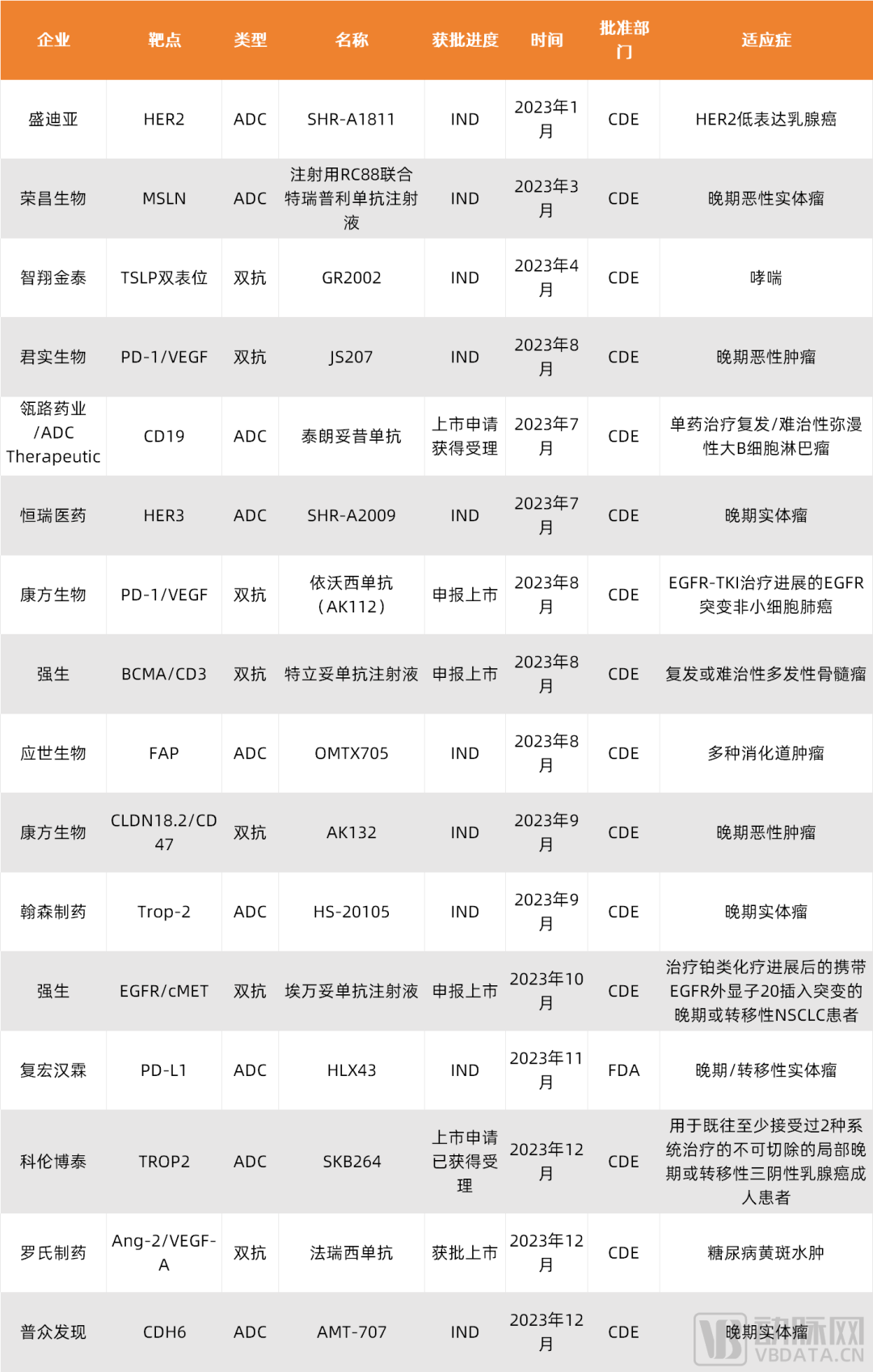 2023年中国ADC、双抗管线IND获批情况,数据来源:公开新闻汇总整理,蛋壳研究院