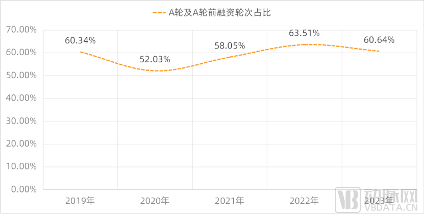 2019-2023年国内早期投融资事件占比情况,数据来源:动脉橙产业智库,蛋壳研究院