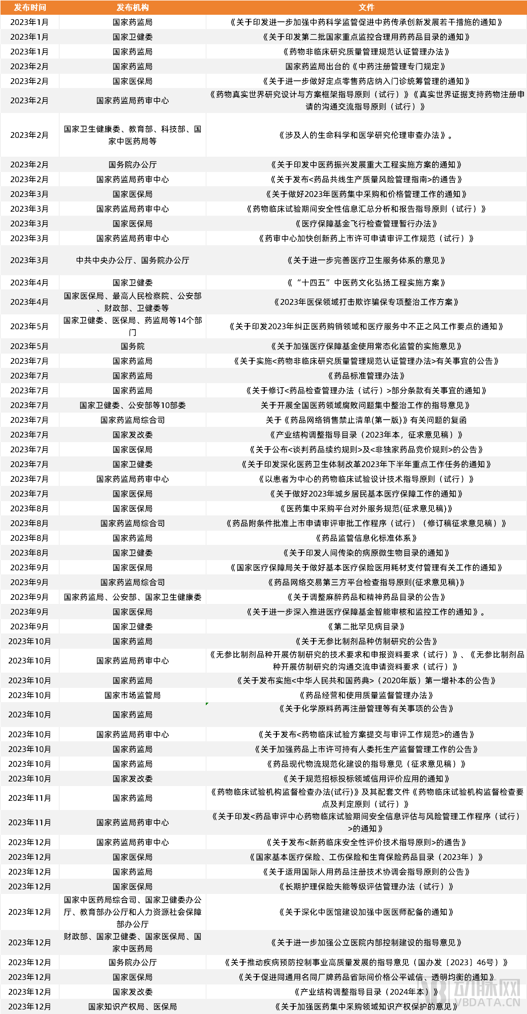 ● 200余条政策,振兴发展中医药、促进创新药开发和提升临床质量、规范网络售药