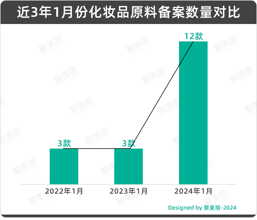 今年开年,仅1个月,化妆品原料备案就化妆品原料备案新增12款,而2023年1月与2022年1月,皆仅备案3款。