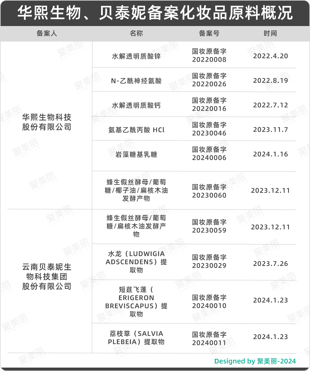 1、莹特丽、赢创在华备案新原料,国内知名品牌持续加码原料