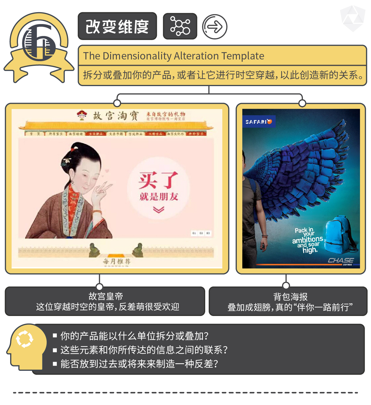 国际营销学教授Jacob Goldenberg曾做过一项研究,发现在200例国际创意大赛的获奖作品中,有89%都可以归入6个创意模板。而糟糕广告,只有2.5%遵循过其中一个模板。