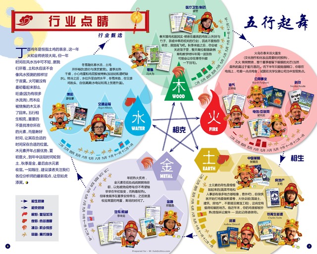 而根据鸡年的八字五行来看,全年属火和金的行业都属于表现优异之列。整体看好交通运输、博彩和可再生能源行业;报告认为大宗商品、房地产及内地相关股票也少不了肉肥酒厚。