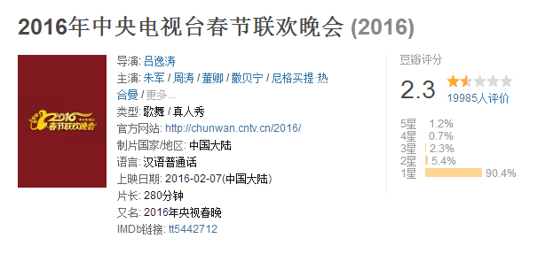 2016年春晚,是创下历史纪录的春晚。什么纪录呢?就是豆瓣评分跌破历史新低……