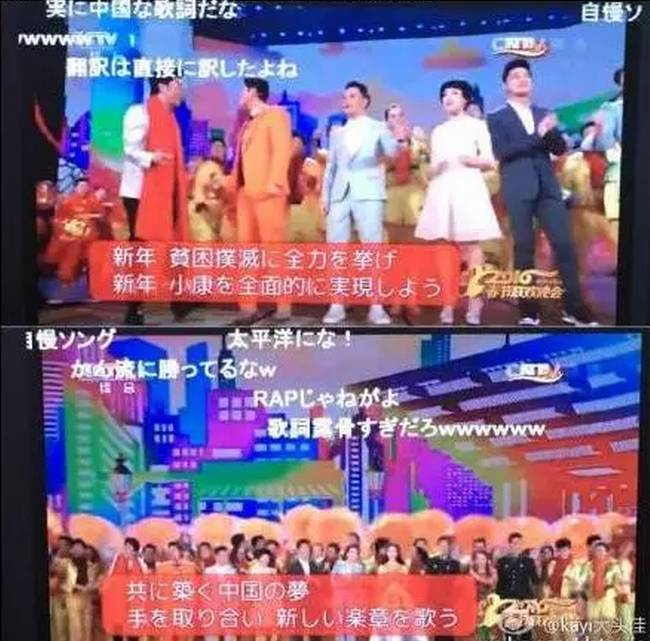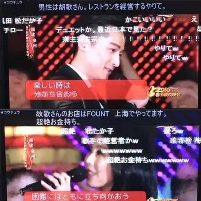 吐槽、弹幕文化发祥地、日本“B站”——niconico,在去年的大年三十,同步直播了中国春晚。其弹幕之丰富有趣,官方解说八卦储备之完善,以及零点日本网友生疏地输入中文“新年好”刷屏,硬糖君必须说: