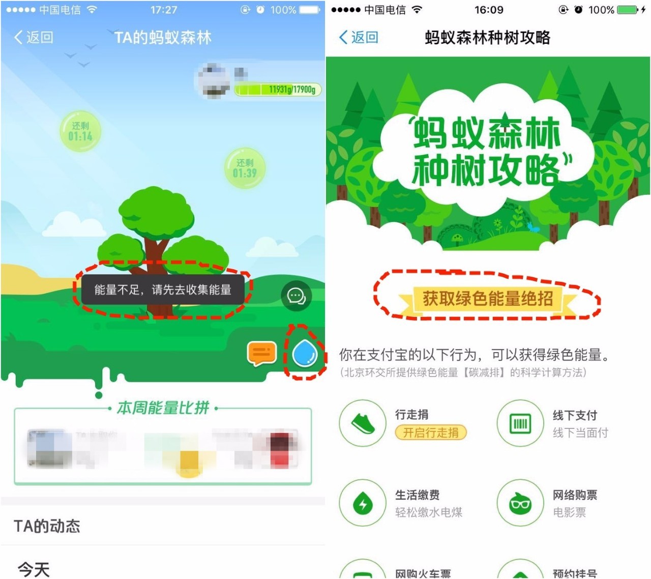 需要注意,浇水需要消耗绿色能量,获得绿色能量的攻略,蚂蚁森林主页面的小黄书即可获取。无论是使用支付宝线下支付还是交水电费,均可获得能量。