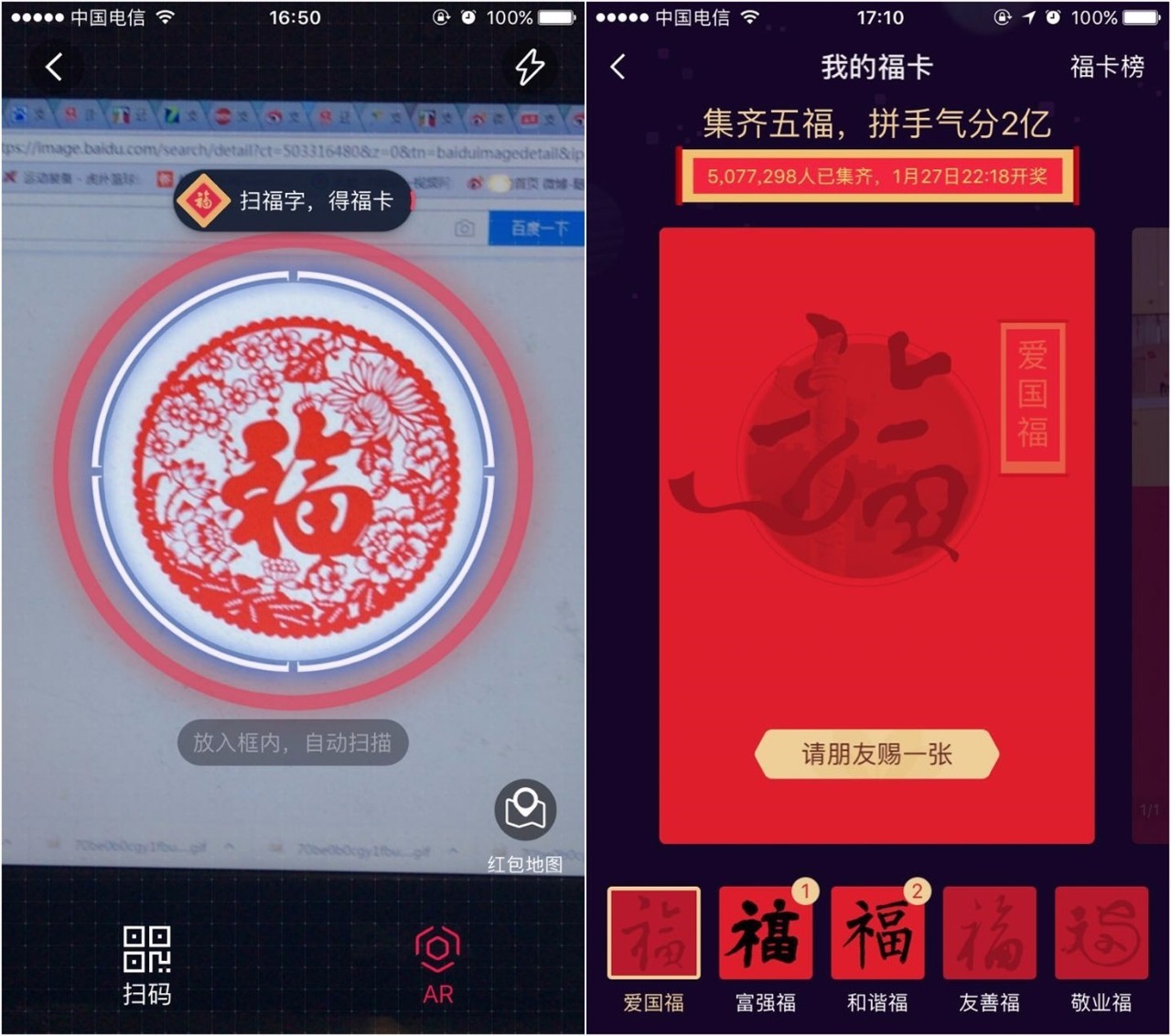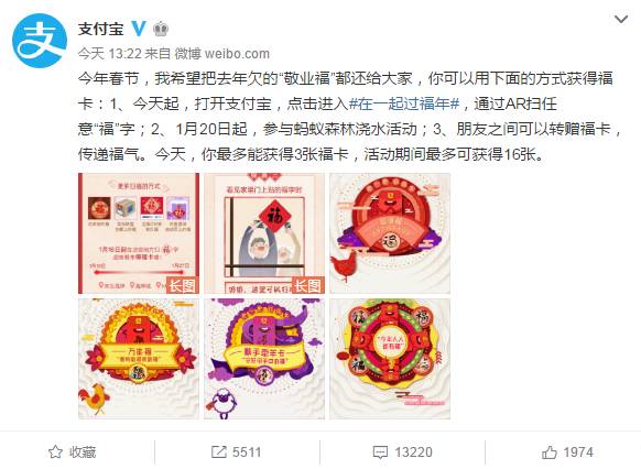 “1月18日,你最多能获得3张福卡,活动期间最多可获得16张。”也就是说只要你花点心思,集齐五福不再是梦。