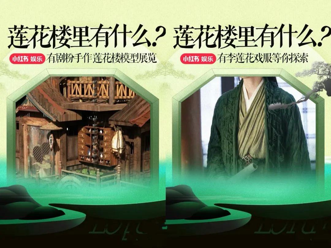 剧集市场也有类似玩法,暑期红极一时的《莲花楼》,在小红书在站内发起了互动装置展活动,在线下1:1复原莲花楼,同样引发了不少粉丝前去打卡。这种从线上文娱消费引导到线下聚会的方式,能进一步增强粉丝群体凝聚力,催熟IP。这也是小红书的优势区间,不容易被其他平台所代替。