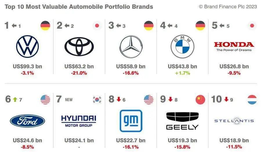 价值最高十大汽车集团榜单