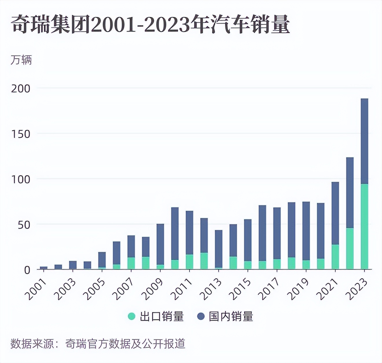 奇瑞汽车2001-2023年历年销量