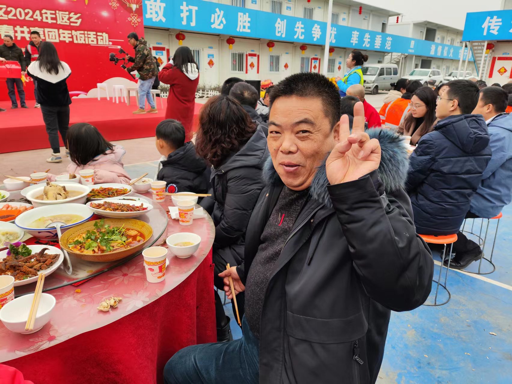 “在新区上班既能赚钱,又能照顾家人。”他兴奋地说,“在‘家门口’、在自己工作的地方,和这么多工友一起团年,有种自家请客的感觉,挺自豪的!”