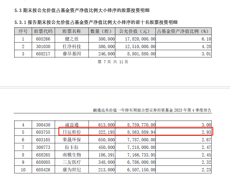 融通基金旗下的融通远见价值一年持有期混合2023年四季度末重仓持有日辰股份约32.21万股,是该基金的第五大重仓股。截至2024年2月6日,该基金年内净值下跌25.25%,跑输业绩比较基准超过20个百分点。
