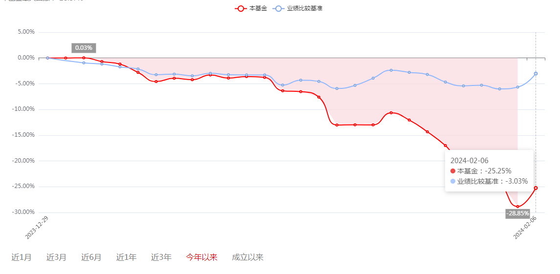 截至2024年2月6日,该基金净值累计下跌17.33%,主要发生在2024年。数据显示,融通远见价值一年持有期混合年内净值下跌25.25%,跑输业绩比较基准超过20个百分点,同类排名3971/4193。