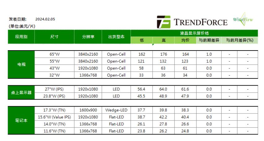 液晶面板市场最终走势也如上游面板的“预想”一样,其价格不仅没有持续下跌,而且进入2024年一月之后又再度进入“上涨通道”。