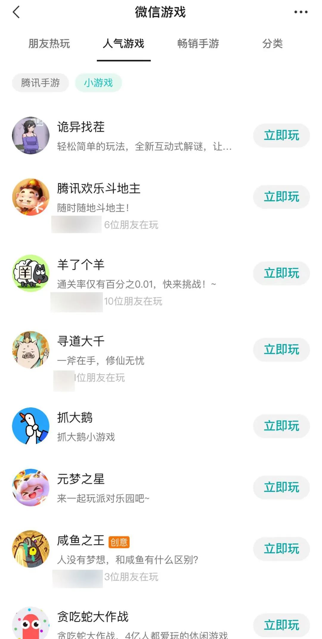 现在打开微信小游戏页面,在好友热玩的排行榜上,《羊了个羊》仍名列前茅,而当玩家再次进入这款游戏,可以发现界面更加丰富,游戏内上线了更多新玩法,也设置了多款其他游戏的跳转链接。