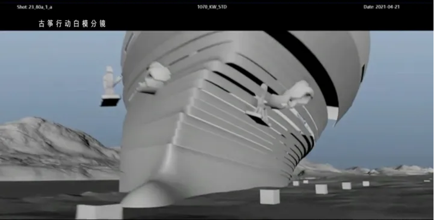《硅谷101》:“古筝行动”里的那艘巨轮是真的吗? 陆贝珂:船有一部分是真的,剧中在轮船上人的近景,那些在那个船甲板上的ETO(Earth-Trisolaris Organization,地球三体组织的简称) 人员大多数都是实拍。但船在河道上运行以及最后被切割的画面大部分都是CG。关于切割的部分,我们最后导完了之后也搭了一个实景,但是那个实景只有整个大环境的 1/ 20 的局部,因为在拍完小说中所描述轮船整体像扑克牌一样摊开之后,需要拍摄人进去轮船内部取硬盘的情节,那就必须用实景来完成。