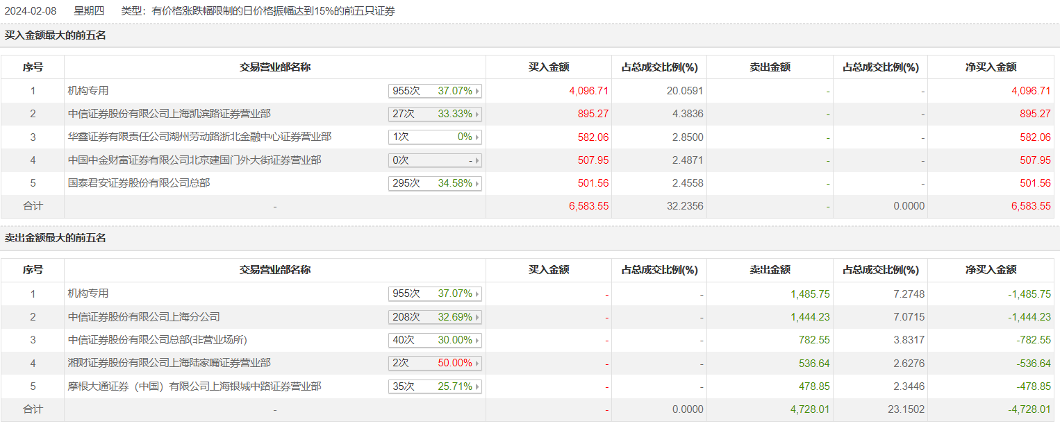 华正新材2月8日涨停,全天换手率9.40%,成交额2.04亿元,振幅22.29%。龙虎榜数据显示,机构净买入2610.96万元,营业部席位合计净卖出755.43万元。上交所公开信息显示,当日该股因日振幅值达22.29%上榜,机构专用席位净买入2610.96万元。